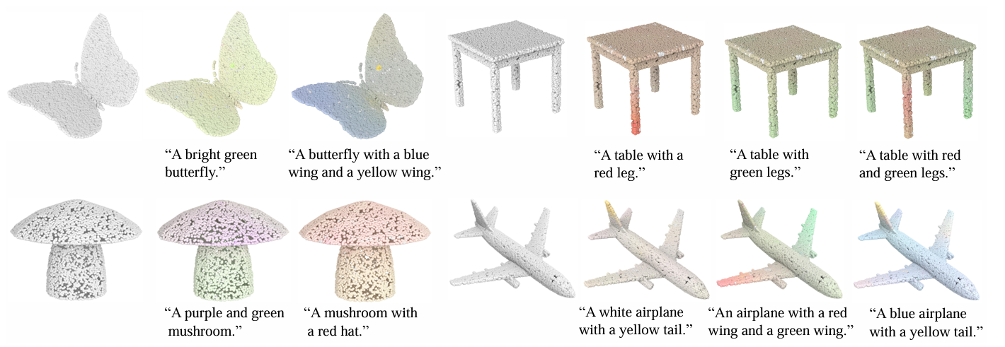 - point cloud painting: ํ ์คํธ ํ๋กฌํํธ์ ๋ง๊ฒ pc์ ์์์ ์ต์ ํํ๋ ์์
