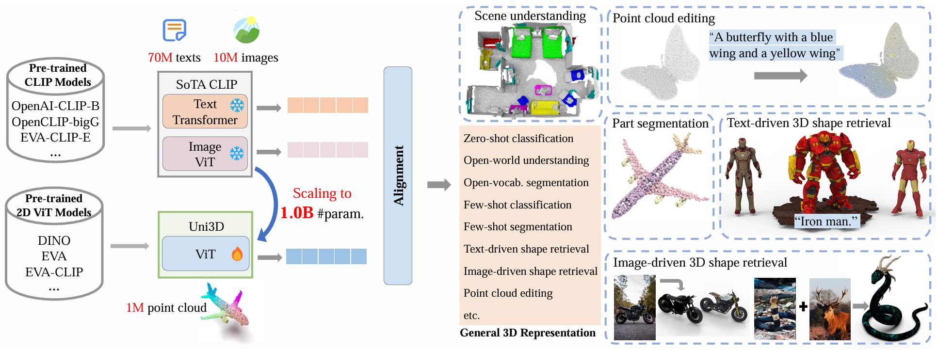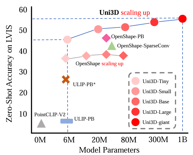 - uni3d๋ 3d ๋ชจ๋ธ์ 1b ๋จ์ ๊ท๋ชจ๋ก ํ์ฅํ ํตํฉ ํ๋ ์์ํฌ์
