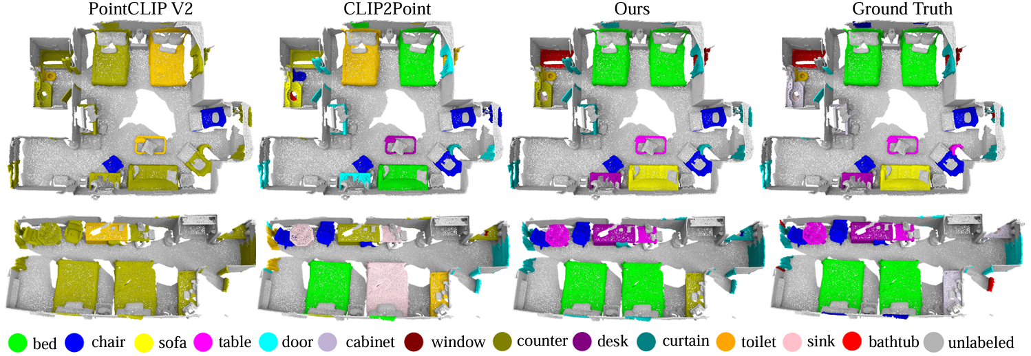 - 3d์์๋ clip ๊ธฐ๋ฐ ํํ์ ํตํด part segmentation ์ฑ๋ฅ์ ๋์ด์ฌ๋ฆด ์ ์์์ ๋ณด์ฌ์ฃผ๊ธฐ ์ํจ